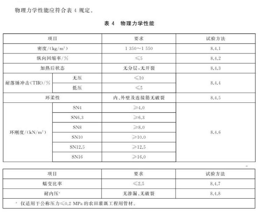 PVC-U雙層軸向中空壁管材物理力學(xué)性能